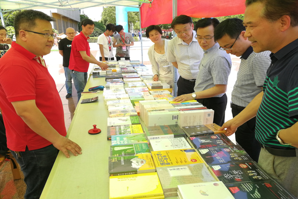 大会开幕式结束后,许多师生陆续来到书展前,驻足翻阅一本本好书。在书展现场,读者们纷纷对图书精美的版式赞不绝口、对名匠大家的生平轶事如数家珍、评鉴曾经读过的好书、下单购买、向图书馆推荐、作问卷、互动答题获赠小礼品、合影留念,现场气氛十分热烈。学校领导一行也来到图书展台前,与现场工作人员亲切交流,肯定了校园书展作为一种“文化消费”形式是大学生商品展销会的有益补充,接着评鉴了多本时下热门书籍,并鼓励现场参会的同学们要多读书。整个活动历时8个小时,在校园内取得了良好的反响。