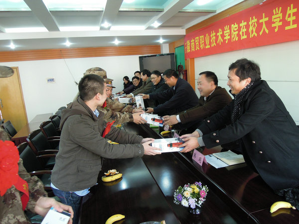 9位新兵战士们也在会议上表达了对母校培养的感激之情,表示到部队后一定不负母校重望,刻苦训练,勤奋学习,甘于奉献,为母校争光,为祖国的国防建设做贡献。会议结束时,与会领导、老师们向9位新兵战士赠送了学院的纪念品。