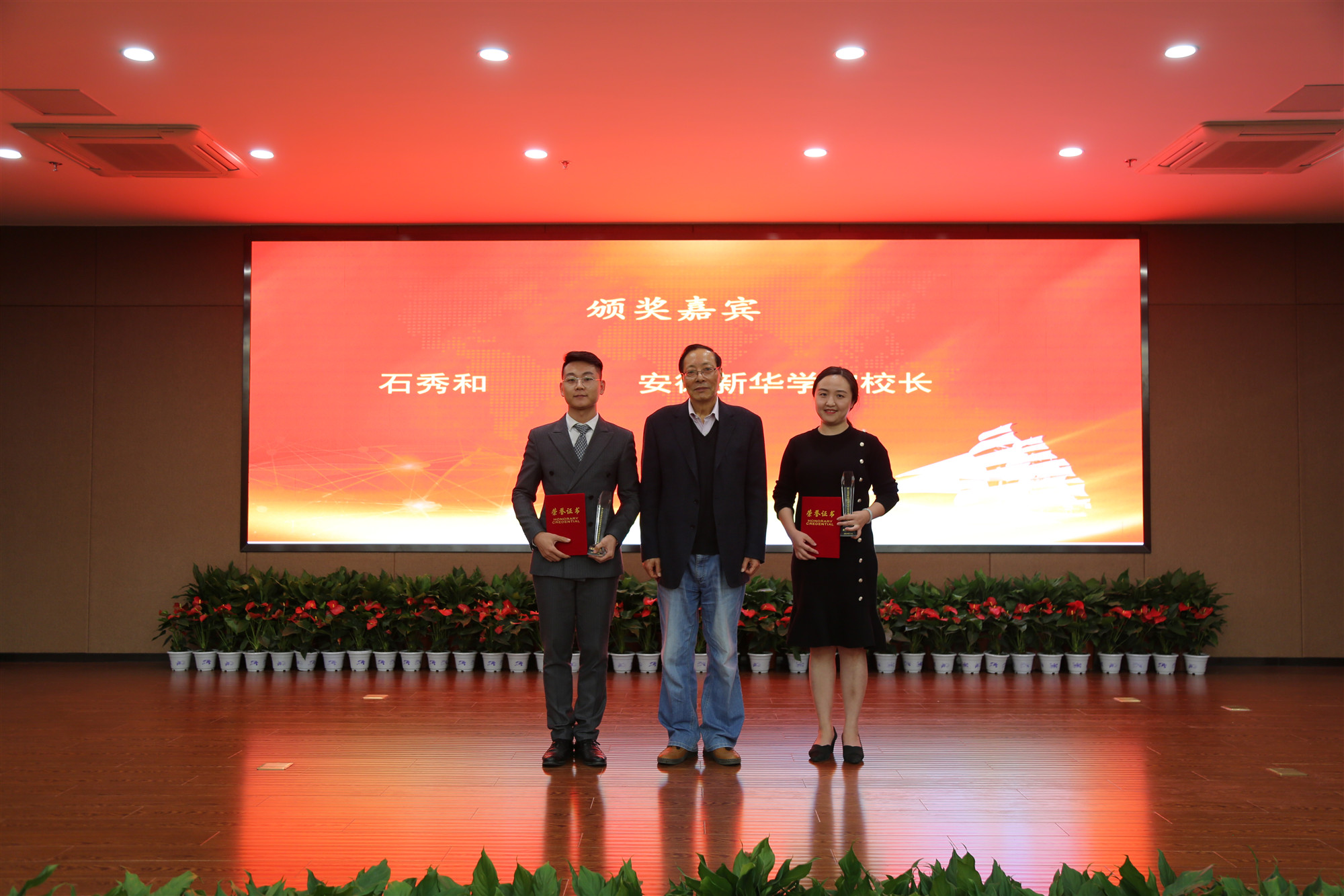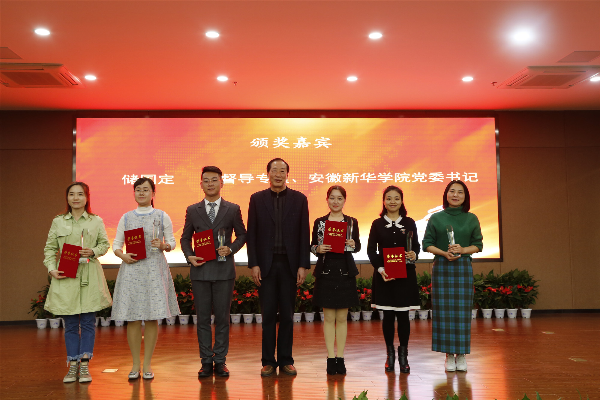 省委教育工委委员、省教育厅副厅长解平,省督导专员、安徽新华学院党委书记储国定,安徽新华学院校长石秀和,省教育厅高校学生处处长陈锋,省大中专毕业生就业指导中心主任袁江林,安徽新华学院校长助理贺行佳等来自省内外14位评委专家出席颁奖典礼并为获奖选手颁奖。