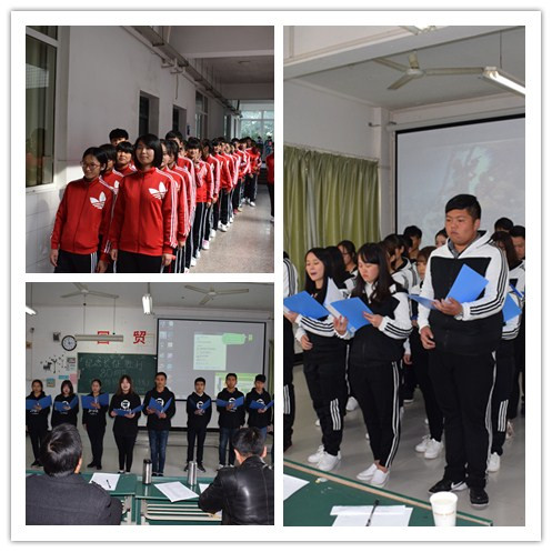 复赛由思政教学部会同学生工作处组织2016级79个班级以系部为单位开展。复赛在笃学楼进行,现场呈现出一派火热的景像:79个班级参赛代表队身着统一的表演服装、遵循礼貌的礼仪规范,再一次熟悉诗稿,又一次练习动作,紧张而有序地候场准备。