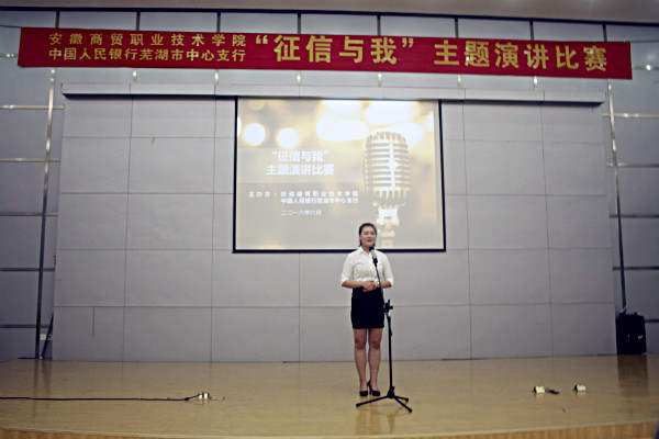 为营造“诚信为荣,失信为耻”的良好社会风气,强化大学生的征信意识,使诚信的种子在校园里生根发芽。6月1日晚,由学院和中国人民银行芜湖市中心支行联合举办的“征信与我”主题演讲比赛在学术报告厅举行。学院总会计师王炜、中国人民银行芜湖市中心支行姚平副行长、中国人民银行芜湖市中心支行征信科李小明科长及相关部门负责人、各系党、团总支书记观看此次比赛。