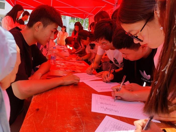5月25日中午,心理素质发展中心带领太阳花心理志愿者协会在食堂前广场开展了“助‘双高’建设,强职业心态”主题宣传活动。活动现场,志愿者引导同学们进行职业兴趣、职业价值观、职业气质、职业性格以及沟通交际、情绪控制、实践执行、适应、思维、团队合作、自我发展、自我学习八大就业能力的测试,帮助测试者更全面、深入地了解自己:自己喜欢做什么?适合做什么?能够做什么?应该做什么?通过科学测试,在求职以及职业规划中做到“知己”。参与活动的同学纷纷表示收获颇丰,积极在主题横幅上签名,并表态要争做时代新人,做好学历提升,磨练技术技能,强化职业心态,开展创新创业实践,为学校“双高”建设积极助力。