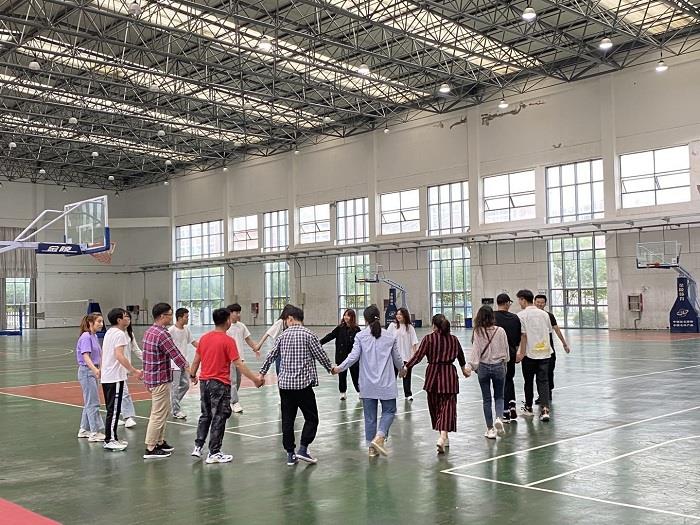 5月26日下午,学校体育馆内,各学院心理专员老师和学生心育工作的代表们参加了一场别开生面的的素质拓展活动。在拓展教练的带领下,师生们团结协作,完成了一系列看似简单却不易完成的活动和任务,在玩中学,在学中悟,在欢声笑语中思考和体验。在拓展活动中,师生们放松心情,愉悦身心,拓展思维,感悟成长。