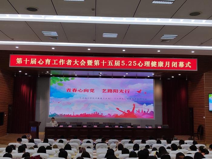 6月8日,学校第十届心育工作者大会暨第十五届5.25心理健康月闭幕式在学术报告厅进行。学校党委副书记、纪委书记朱光应,各学院党团总支书记、辅导员、心理素质发展中心的全体老师和心理健康委员等全体心育工作者参加了大会。朱光应为闭幕式作了热情洋溢的致辞,高度肯定了心理育人工作的重要性,并向为5.25心理健康月活动付出辛勤劳动的老师和同学表示诚挚的谢意。学校党委委员、学生工作处处长、团委书记郑伟回顾了本届心理健康月系列活动的开展情况。随后,大会为在系列活动中获奖的单位颁奖,并为太阳花心理志愿者协会成员颁发聘书。信息与人工智能学院和艺术设计学院荣获本届心理健康宣传月组织工作一等奖;心理专员许明星和洪凤作主题发言,并向与会的心育工作者总结分享了本学院心理宣传活动的开展情况,为心育工作提供了新的视角。