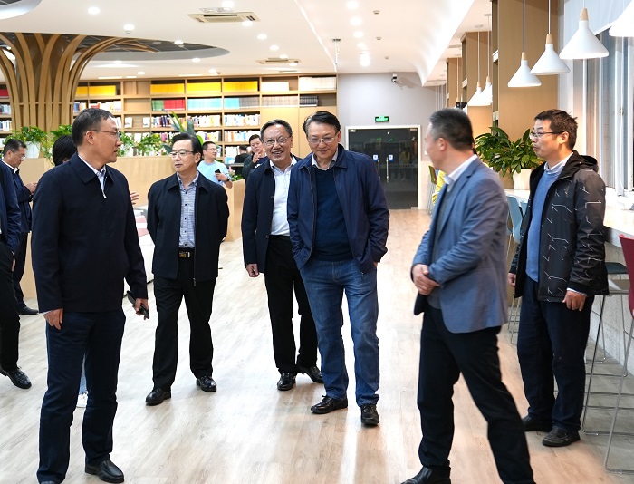 会后,张冲、盛鹏一行在校领导的陪同下参观了艺术设计学院和图书馆。