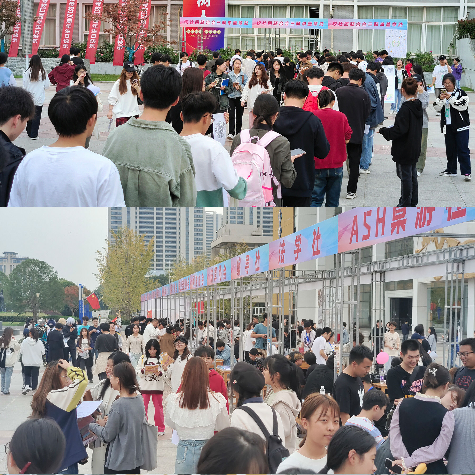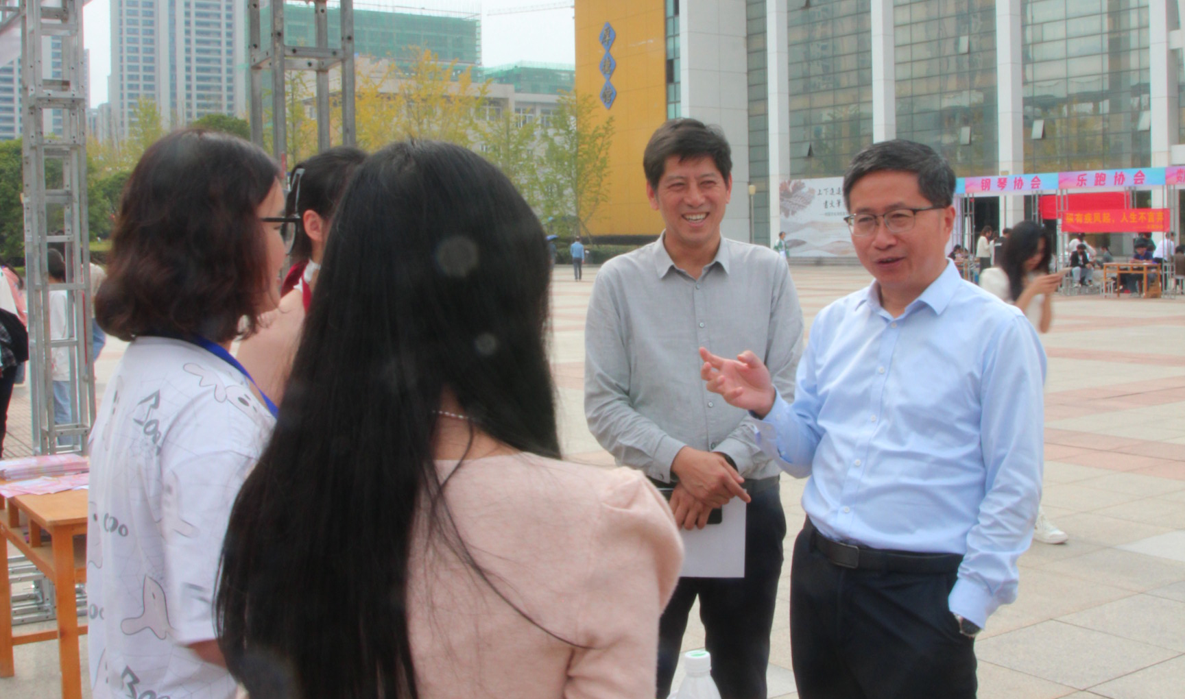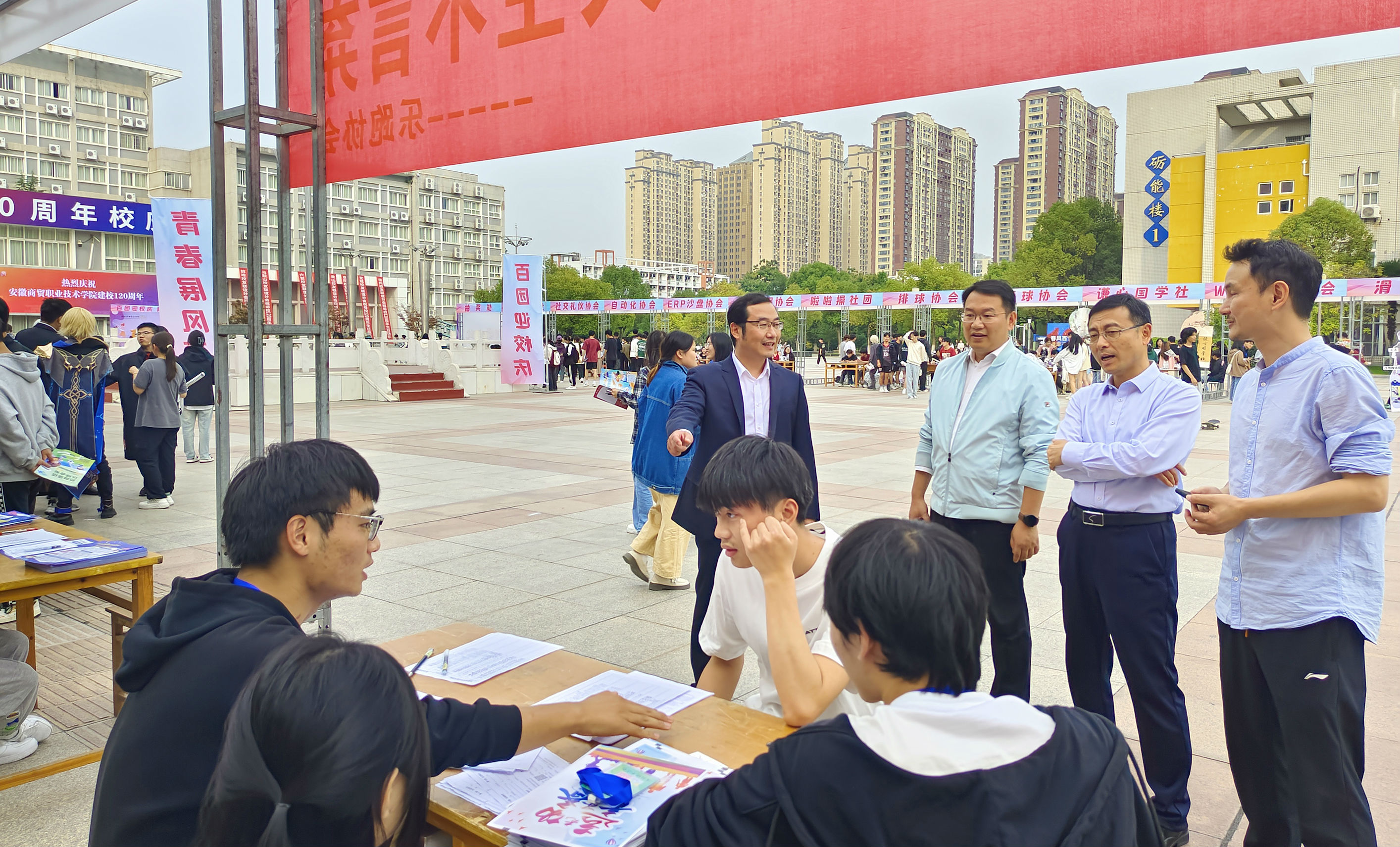 10月25日至27日,笃学楼广场彩旗飘扬,“百团庆百廿 青春展风采”社团文化展示暨学生社团年度招新活动顺利开展。校党委书记曾黎明、党委副书记王炜及相关部门负责人来到招新现场,为社团发展把脉,与同学们亲切交流。