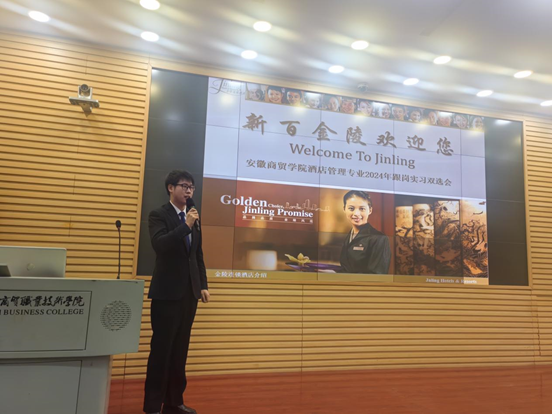本次岗位实习双选会采用了分散和集中相结合的方式,由企业根据自身情况决定是单独宣讲遴选或参加集体双选会。在12月29日的集体双选会中,上午在砺能楼4-102录播教室举行了岗位实习宣讲会,酒店管理教研室主任法义滨向现场师生介绍了前来参会的企业领导专家,向学生强调了岗位实习的重要性和举办宣讲会的意义,希望同学们珍惜与职业经理人近距离接触的机会,并初步进行自己的职业生涯发展规划。随后,芜湖新百金陵大酒店、合肥洲际酒店、杭州开元名都大酒店等9家来自省内外的酒店人力资源负责人逐一进行宣讲,并现场与学生进行互动,解答学生相关问题。当天下午在笃学楼103多媒体教室举办双选会,学生结合自身情况与各家企业进行沟通,并现场落实实习单位。