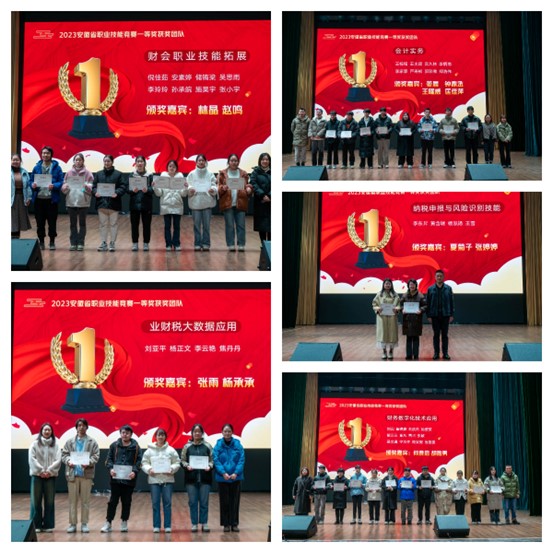 在当天中午刚刚结束的安徽省2023年度职业技能竞赛中,会计学院在激烈的角逐中展现出卓越实力,取得了学生赛9个一等奖、教师赛1个一等奖的辉煌成绩。学院为获奖团队颁发荣誉证书,以表彰其在竞赛中的杰出表现。