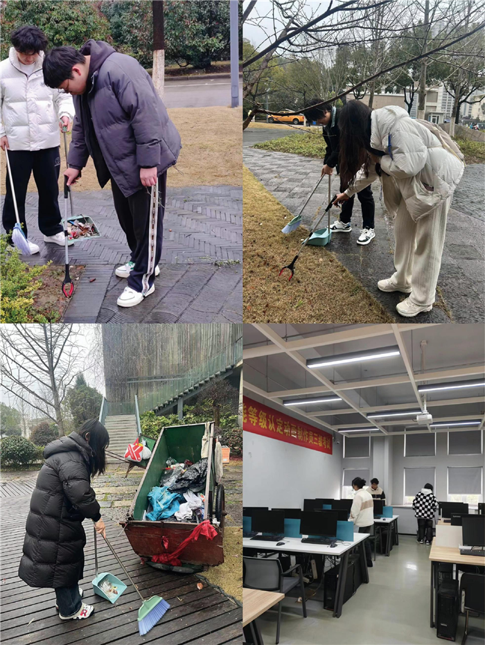 3月5日下午,艺术设计学院参加学雷锋活动的学子们手持清洁工具,冒着淅淅沥沥的小雨,精神饱满地开始了本次志愿服务活动。志愿者们首先对砺能3#楼内外进行了彻底的清扫,包括楼梯、走廊、教室等公共区域。他们认真擦拭楼梯扶手和走廊内展架上的灰尘,清理旮角的残余垃圾,把公共区域打扫得干干净净。随后,志愿者们又来到了砺能3#楼周围区域,开展了“烟蒂不落地 校园更美丽”行动,对周围的绿化带进行了细致的清理。