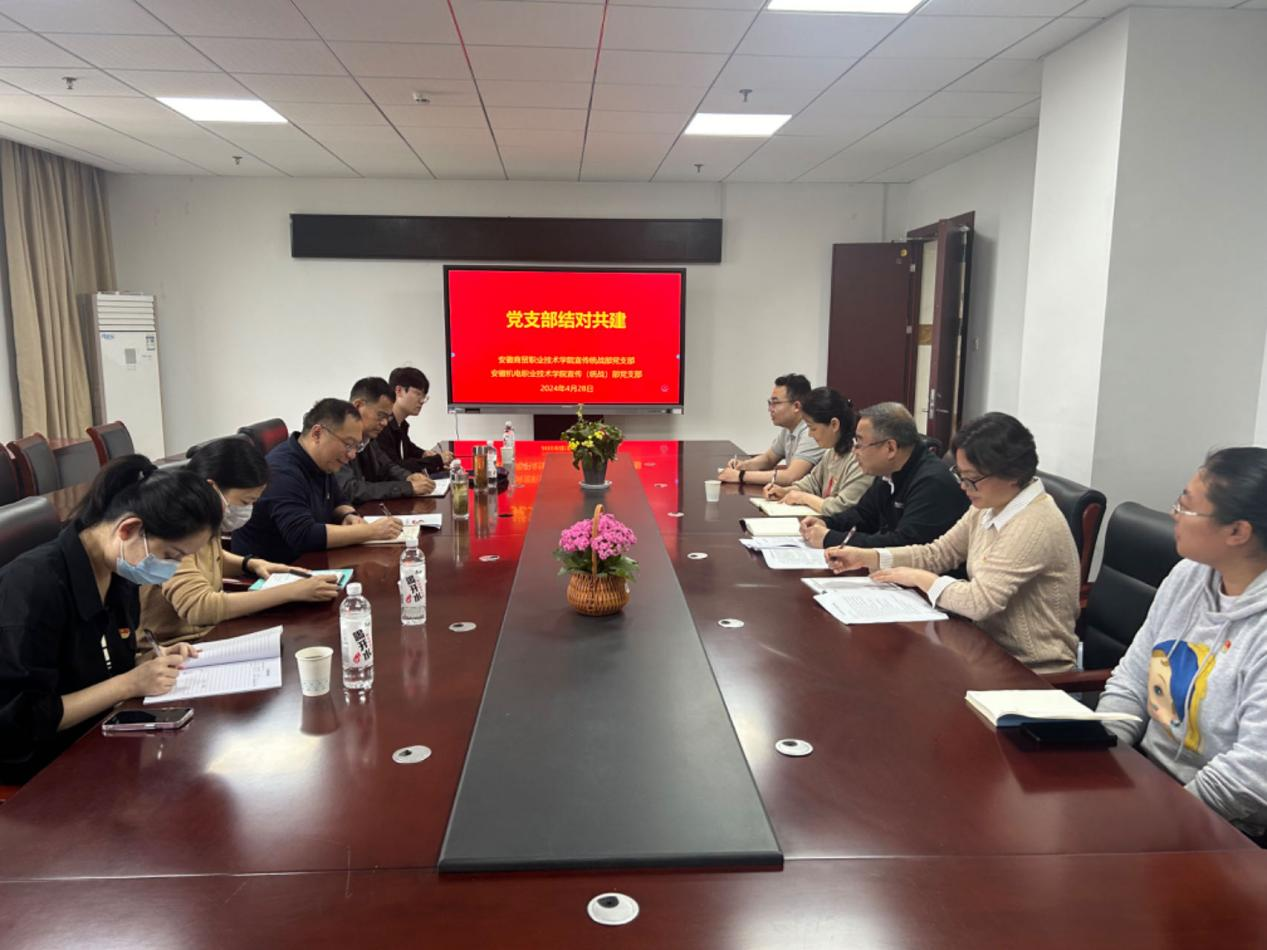 为切实加强基层党组织建设,进一步强化党建引领,激发创新动能,凝聚发展合力,4月28日上午,我校宣传统战部党支部与安徽机电职业技术学院宣传(统战)部党支部开展结对共建,双方党组织立足各自实际需求和发展目标,商讨共建事宜,共谋发展格局。
