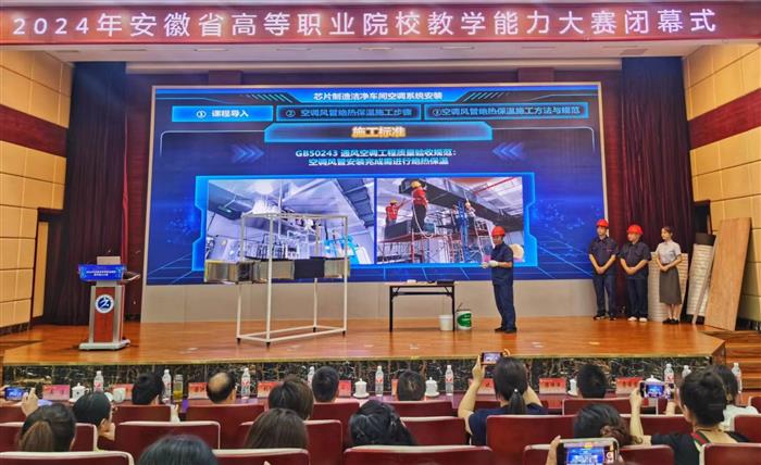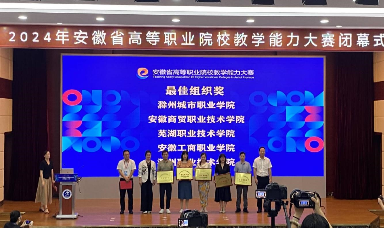 近日,2024年安徽省高等职业院校教学能力大赛闭幕式在芜湖举行。全省共有64所职业院校参赛,我校荣获最佳组织奖。这充分展现了我校教师与学生踔厉奋发的精神风貌,彰显了我校长期以来教育教学改革的丰硕成果。