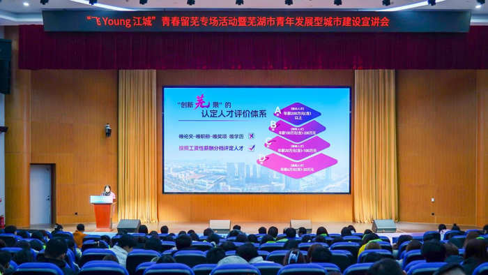 12月5日下午,“飞Young江城”青春留芜活动暨芜湖市青年发展型城市建设宣讲会在我校举行,团市委、市人才发展集团,校招生就业处、学生工作处、团委等部门负责人,校友代表、电子商务学院师生代表400余人参加活动。