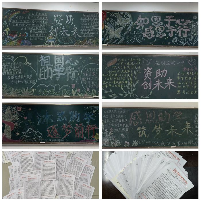 学院鼓励学生以手写书信、绘制黑板报等传统而真挚的形式,表达感恩之情、立志之向。受助学生纷纷提笔,在致国家、社会、学校的信中,娓娓道来受助感悟与成长决心,字句恳切,情真意浓。同时,各班级围绕主题,匠心打造了图文并茂的“资助·感恩·励志”专题黑板报。一幅幅生动板报,既是感恩意识的集中展示,也是励志宣言的公开园地,在方寸之间营造了“言感恩、思进取、传能量”的浓厚文化氛围。