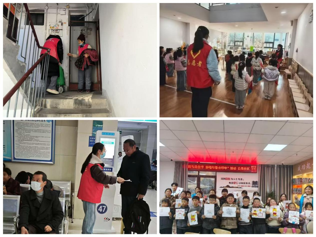面对“一老一小”,同学们以耐心与爱心传递温暖。吴思甜、章小楠等在安医大附属巢湖医院、淮南新华医院担任导医志愿者,帮助老年人跨越“数字鸿沟”,累计服务超2400人次。李依帆、贾玉督等则在“青童学堂”开展课业辅导、趣味手工与安全教育,守护青少年健康成长。彭子阳走访合肥蜀山区低保家庭与孤寡老人,为他们送去物资与陪伴。这些暖心行动,让受助者感受到关怀,也让学子们体会到奉献的价值。