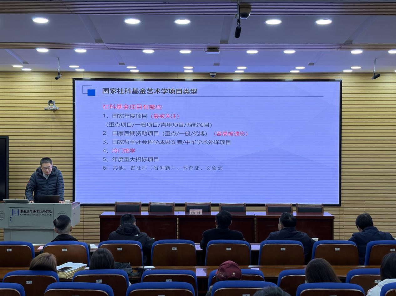为提升教师高层次科研水平,3月18日下午,学校艺术设计学院邀请芜湖市政协副主席、安徽工程大学原设计学院院长、建筑工程学院院长陆峰(二级教授)为我校和安徽机电职业技术学院的艺术设计学院全体教师作《高层次艺术学类科研项目申报》的主旨分享。我校党委副书记、院长王炜参会,讲座由我校艺术设计学院院长吴昊主持。