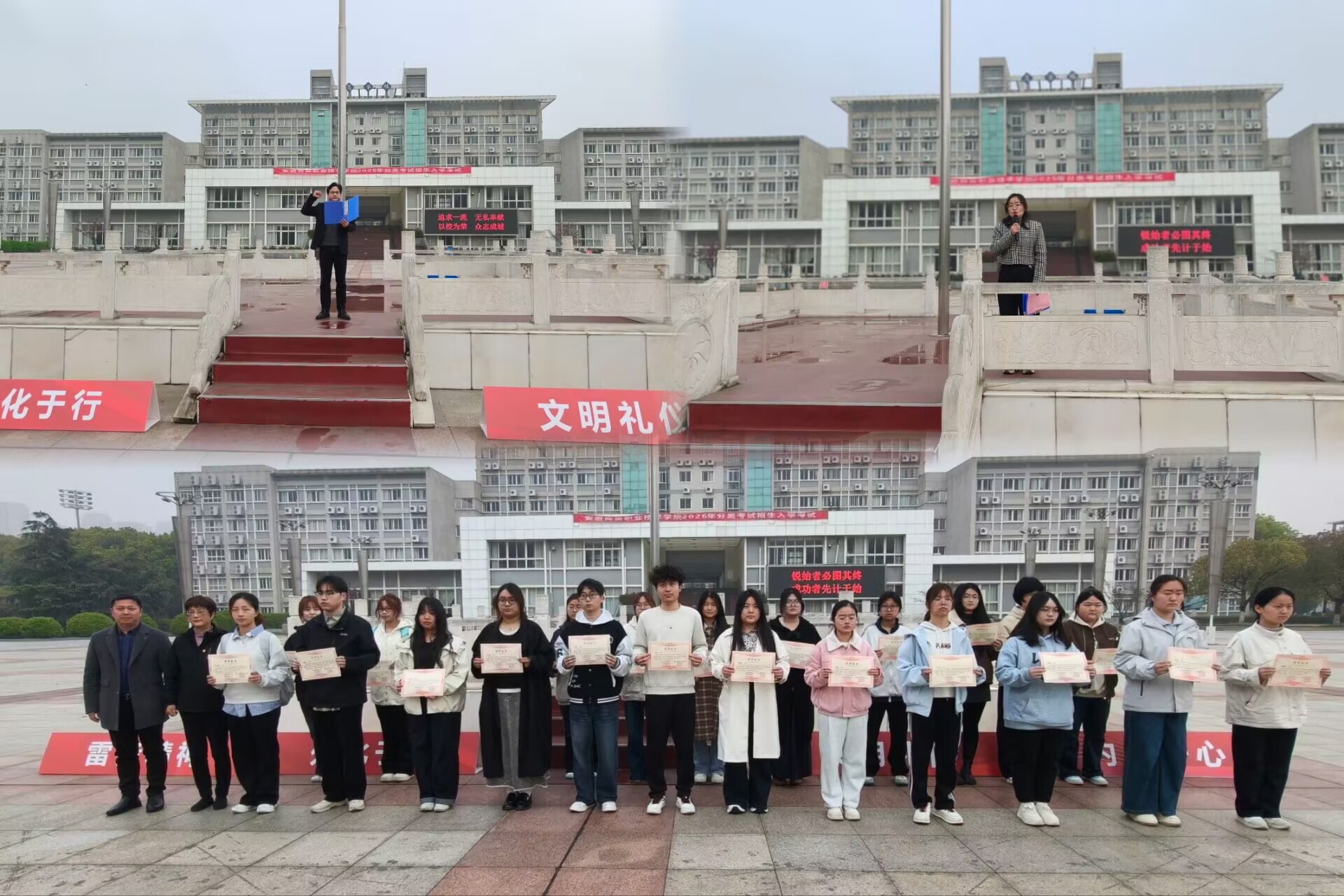 在表彰仪式上,学院对徐峰、蔡军银等25名在安徽省职业技能大赛中表现突出、荣获“优秀志愿者”称号的同学进行了集中表彰。会计学院党总支书记王珠强、院长鲁学生为获奖同学颁发荣誉证书,并一同合影留念。台下师生以热烈掌声向志愿者们表达了由衷的敬意。