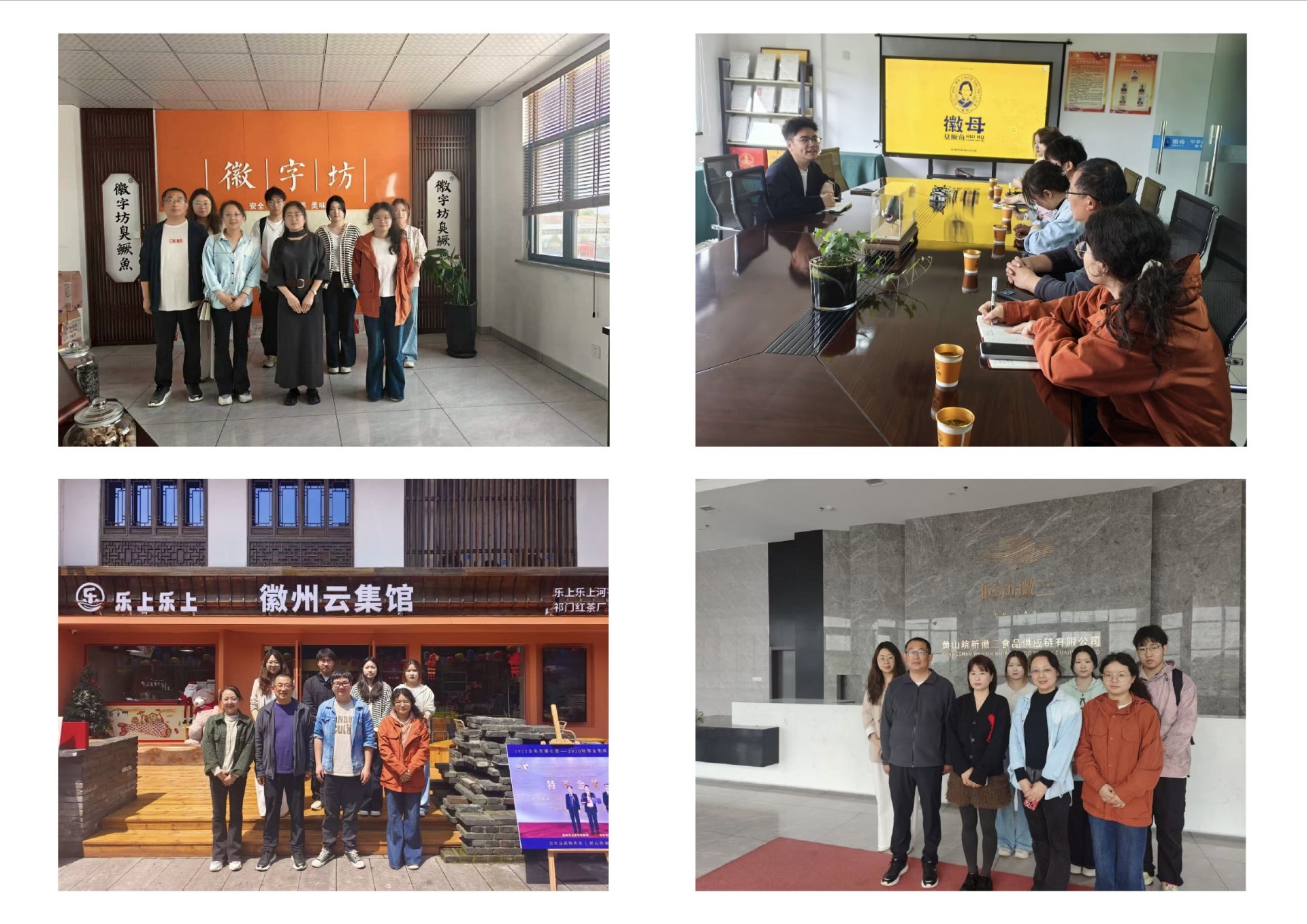调研期间,教师团队深入各企业的运营中心、直播电商基地及产品展示区,实地了解企业发展历程、业务模式、岗位设置与人才需求标准。黄山畅享生活数字科技有限公司聚焦数字生活服务,在新媒体运营与电商营销方面具有突出优势;黄山徽储食业、黄山皖新徽三食品供应链及安徽徽母网络科技等企业深耕徽州特色食品产业,依托电商平台拓展销售渠道,对电子商务运营、直播带货、短视频制作、数据分析等岗位人才需求旺盛。