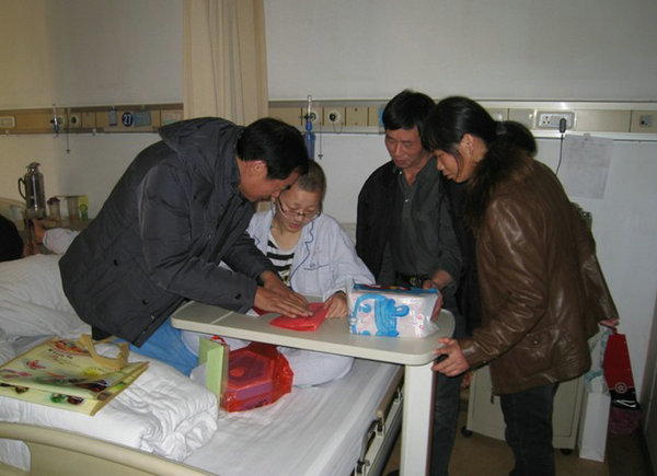 到达医院后,童强民书记首先关切地询问了该同学的病情以及身体恢复情况,让她要先养好身体,并代表学院领导对她的家人进行了慰问,表达了学院全体师生的问候。辅导员陈军老师送上本班同学集体为她做的礼物。朴实的话语,用心的礼物,饱含着浓浓的师生情谊。学生家长也表达了对学校的由衷感谢。