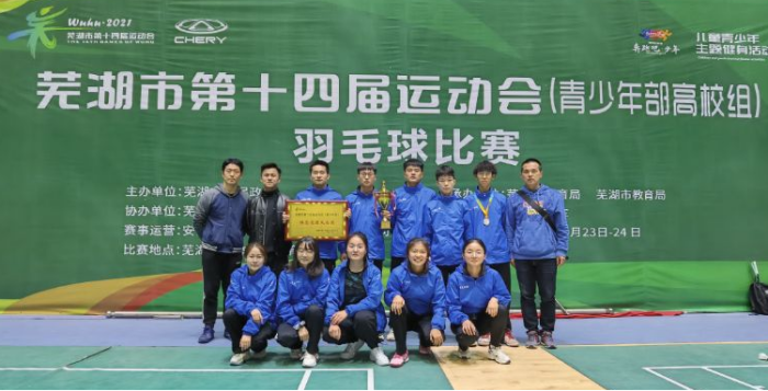 近日,由芜湖市人民政府主办,芜湖市体育局、教育局承办的芜湖市第十四届运动会高校组羽毛球比赛经过两天激战,于10月24日在市奥体中心羽毛球馆圆满落幕。我校代表队取得了男子单打第二名,女子双打第六名,男子双打第七、八名,男团女团两项第四名的好成绩,并获得赛会颁发的唯一体育道德风尚奖。