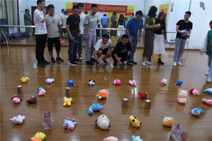 紧张的答题环节结束后,进入轻松的游戏环节。在套圈游戏中,每组嘉宾可获得20个圈,经过三分钟自由套圈,现场男女嘉宾可将获得的礼物赠予心仪对象。在你画我猜环节,每小组推荐1-2名选手负责比划,其他成员负责竞猜,两分钟内猜出较多题目的小组获胜。活动全程欢声笑语不断。